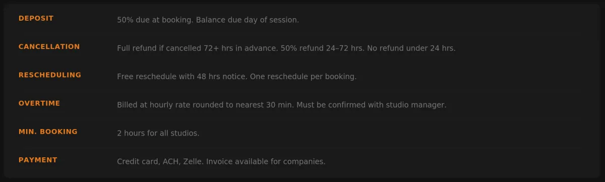 BOOKING POLICIES